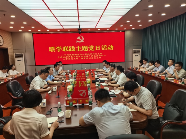 为推进学习贯彻习近平新时代中国特色社会主义思想主题教育走深走实,7月28日,中国地质调查局人事教育部党支部与自然资源综合调查指挥中心人事处党支部、教育培训处党支部开展联学联践活动。在活动中,人事教育部赵奇主任讲授了专题党课,指挥中心沈运华副主任进行了优良传统教育,全体党员参观了香山革命纪念馆、双清别墅,组织重温入党誓词,追寻革命先辈足迹,回望“进京赶考”峥嵘岁月。