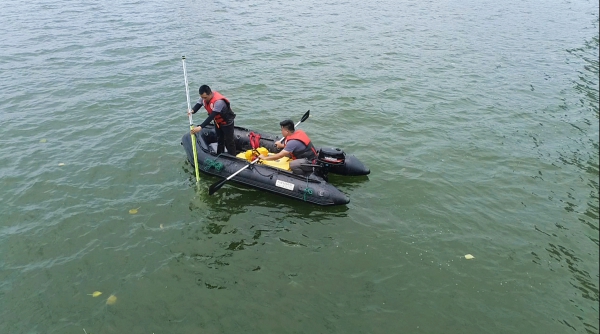 时值酷暑,一群身着浅蓝色衣服的年轻小伙活跃在湖南益阳梓山湖边,他们分工合作,有的娴熟组装皮划艇零部件,给皮划艇充气,检查皮划艇稳定性;有的检查单波束测深仪以及手持北斗报警定位终端、便携式卫星电话、rtk定位设备等性能,并穿戴好救生衣。一切准备就绪,他们将皮划艇抬至湖边,人和装备登上皮划艇后,合力将皮划艇划至目标区域开展测量工作。