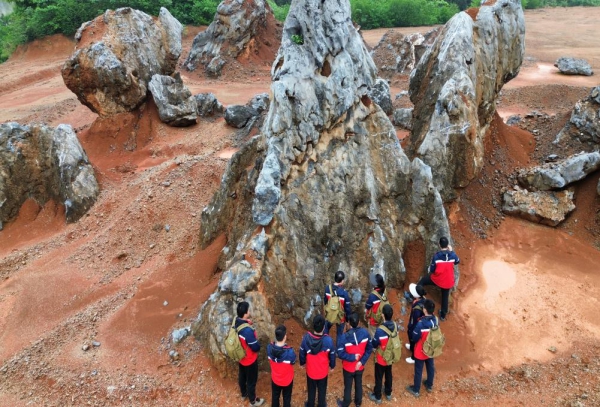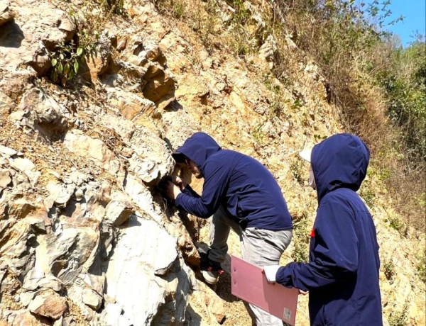 图片说明:长沙中心桂西田林地区区域地质调查项目组在广西壮族自治区百色市田林县开展路线地质调查工作。