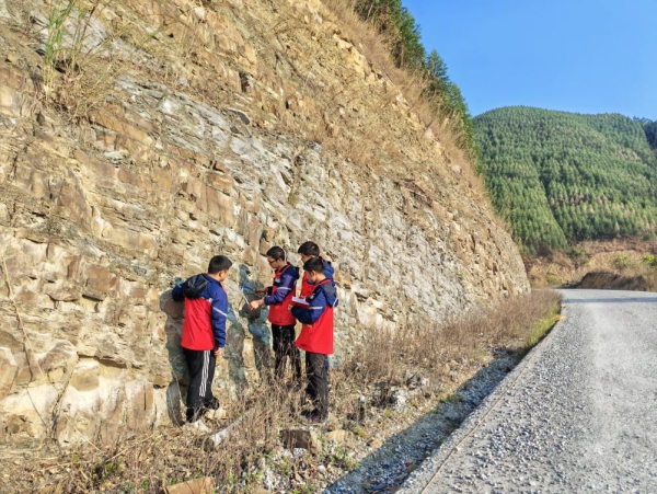 图片说明:长沙中心江西宜春-新余项目组工作人员在江西省分宜县开展1:5万矿产地质调查野外地质测量工作。