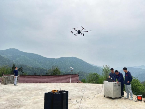 图片说明:长沙中心遥感技术支撑项目组在湖南省安化县黄金村陈家山开展无人机倾斜摄影测量及实景三维重建。
