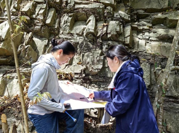 图片说明:长沙中心遥感技术支撑项目组在广西壮族自治区百色市田林县开展遥感构造解译野外验证工作。