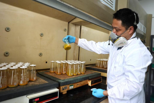 图片说明:长沙中心分析测试实验室分析测试技术员正在采用王水酸溶法分解地球化学样品金元素的前处理工作。