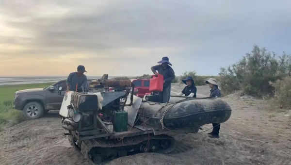 2025年,在新疆艾比湖测量时,两条气垫船都去湖里作业了,随着工作的推进,离岸边越来越远。博尔塔拉蒙古自治州气象局发来的大风预警,管护站工作联系紧急联系在湖面作业的测量人员,让他们立刻返航。谁知,不论是对讲机、手机、还是卫星电话,一个都没人接听。幸运的是大风起时,两条船都安全抵达,一问才知道,橡皮艇的噪音太大,根本听不到手机的响声,之所以及时返航,是测量人员看到阿拉山口云团在聚集,就赶紧往回撤。