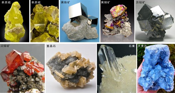 单质硫和常见硫化物、硫酸盐矿物(图片源自网络)