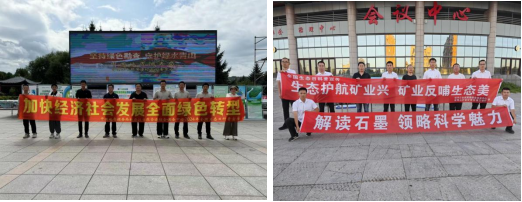 生态地质调查室分别在牡丹江市绥阳镇文化广场和集贤县七星广场开展了科普宣传活动。在绥阳镇文化广场,联合绥阳林业局有限公司党委宣传部,紧紧抓住新一轮找矿突破战略行动和生态文明建设这两条主线,紧扣“促进经济社会发展全面绿色转型”这一主题,向驻地公众科普绿色勘查工作的重要意义。在集贤县七星广场,科普人员联合双鸭山矿业公司东保卫煤矿,通过视频展示、现场讲解等形式,向公众介绍石墨资源的特征、分布、开采现状及广阔应用前景等,同时,倡导企业坚持矿产资源开发利用与生态环境保护并重,将环保理念全面渗透到矿产资源勘查工作中,努力提高矿产资源的综合利用率,实现经济效益、生态效益和社会效益的有机统一,呼吁社会各界共同关注石墨资源的可持续利用,推动绿色产业发展。