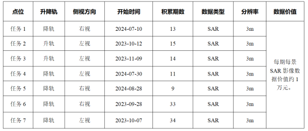 资助数据类型为sar卫星影像,成像卫星为“涪城一号”,由天仪研究院运行并持有数据,卫星重访周期11天。资助数据覆盖范围如下图所示。