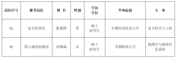 根据《中国地质调查局局属单位2025年度公开招聘工作人员公告(第一批)》,经资格审查、笔试、面试等程序,按照综合成绩由高到低的排序,确定考察对象2名,现将名单公告如下: