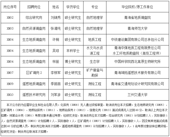 中国地质调查局西宁自然资源综合调查中心2024年度公开招聘拟聘用人员公示中国地质调查局自然资源综合调查指挥中心-k8凯发