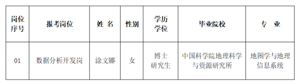 根据《中国地质调查局局属单位2025年度公开招聘工作人员公告(第二批)》,经资格审查、笔试、面试等程序,按照综合成绩由高到低的排序,确定考察对象1名,现将名单公告如下: